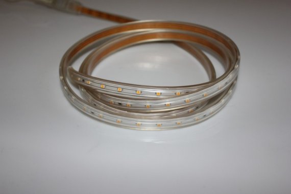 Светодиодная гибкая лента 240V, SMD 3528, помещенная в прозрачную водонепроницаемую полимерную трубку, благодаря которой лента защищена от механических повреждений и может работать, находясь под тяжелым воздействием окружающей среды. Используется во всех видах декоративной подсветки, подсветки рекламных витрин, наружной подсветки зданий.